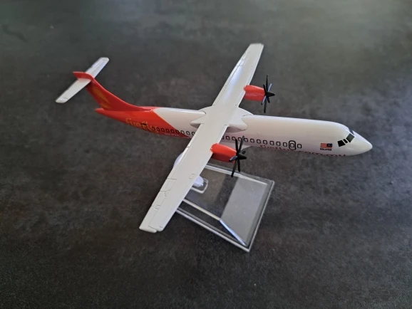 Firefly ATR 72-600 in 1:400 scale diecast model, made from durable metal with detailed propellers, wings and the airline’s orange-and-white design. A bright and solid model for collectors and aviation fans.