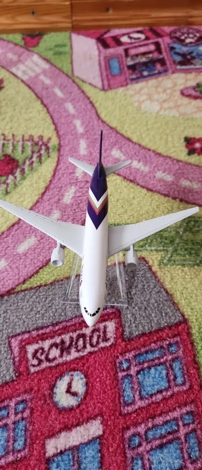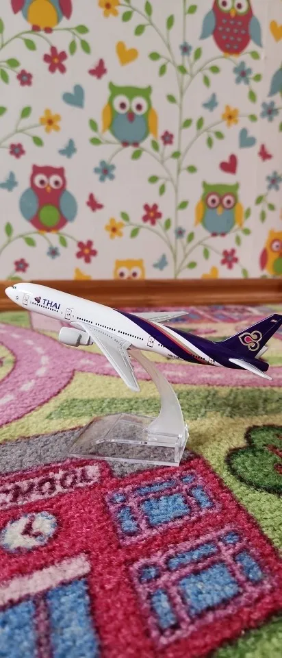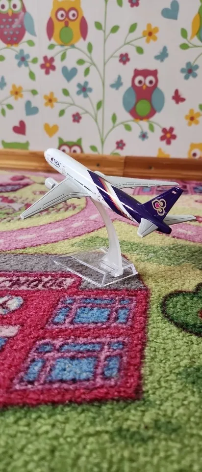 Thai Airways Boeing 777 in 1:400 scale diecast model, made from durable metal with detailed wings, engines and the airline’s purple-and-gold design. A colorful model for collectors and aviation fans.